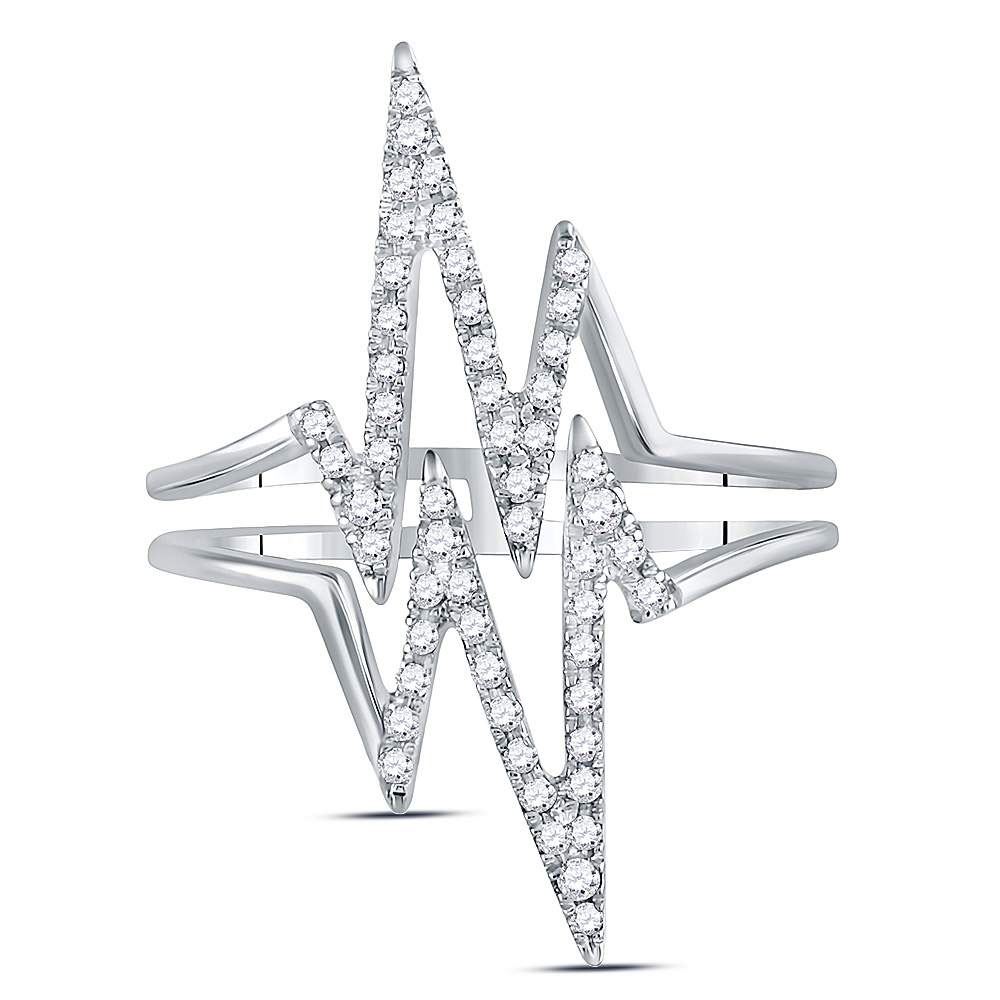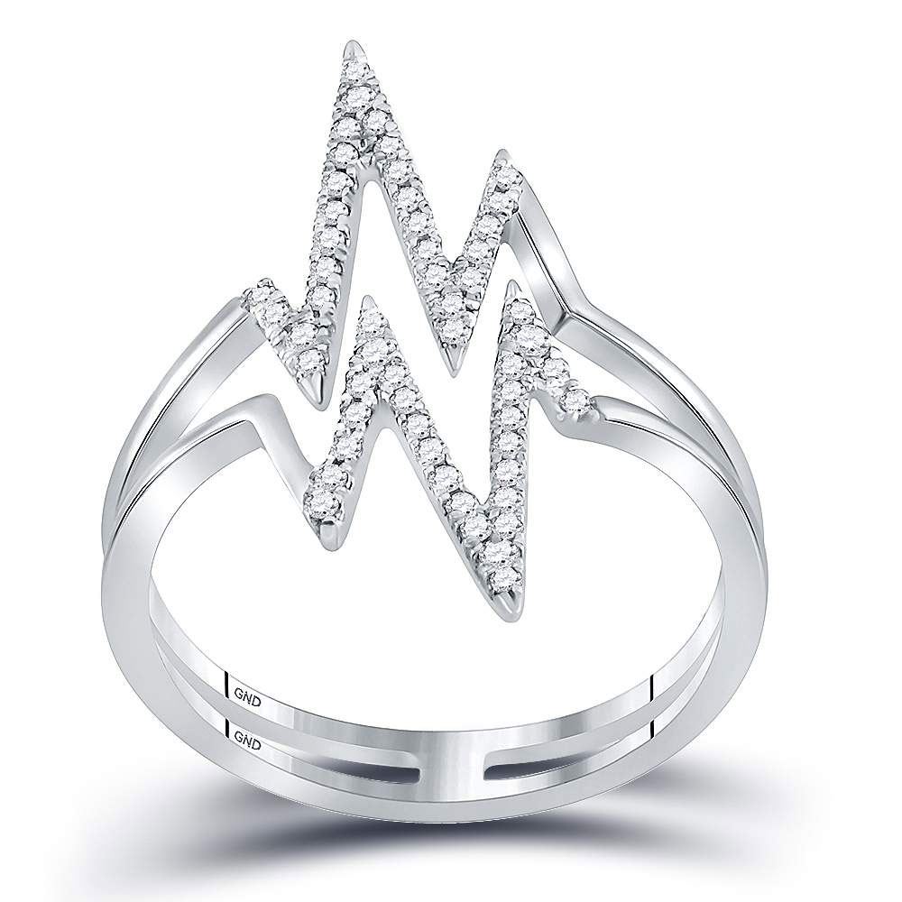 10kt White Gold Womens Round Diamond Double Heartbeat Ring 1/5 Cttw
