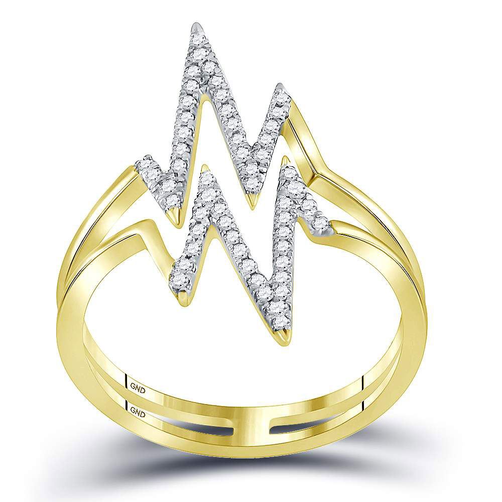 10kt Yellow Gold Womens Round Diamond Double Heartbeat Ring 1/5 Cttw