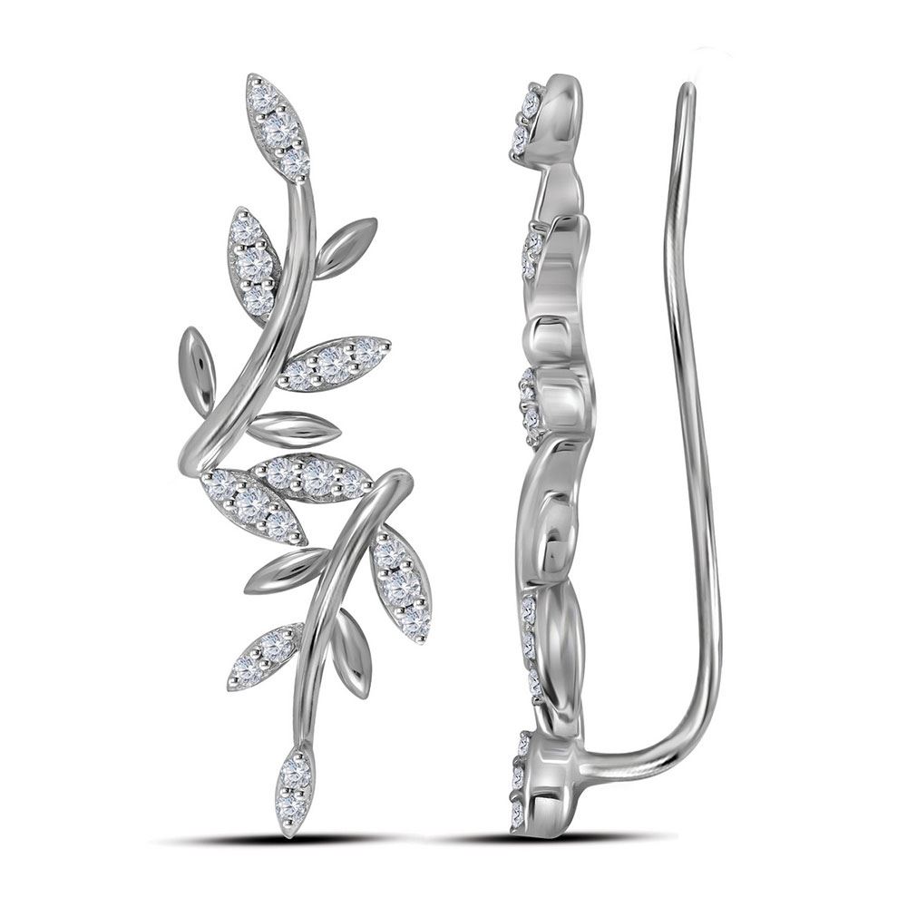 10kt White Gold Womens Round Diamond Floral Climber Earrings 1/5 Cttw
