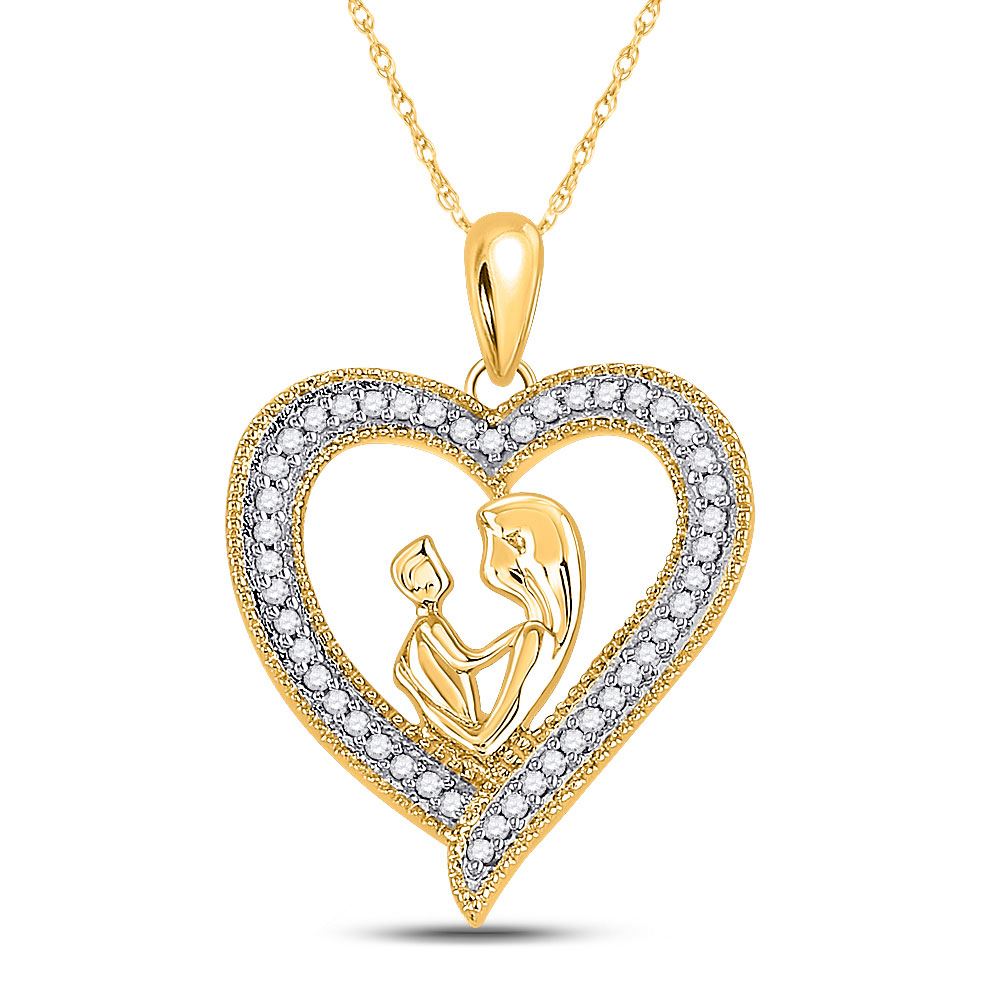 10k Yellow Gold Round Diamond Womens Heart Mother Child Embrace Pendant 1/5 Cttw