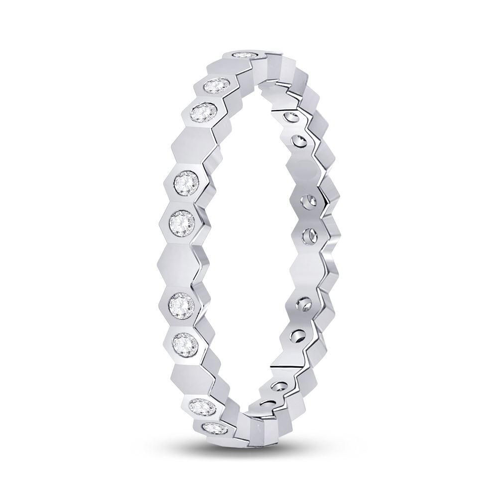 14kt White Gold Womens Round Diamond Machine-Set Band Ring 1/5 Cttw