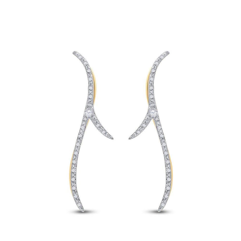 10kt Yellow Gold Womens Round Diamond Slender Climber Earrings 1/5 Cttw