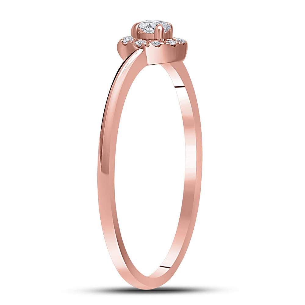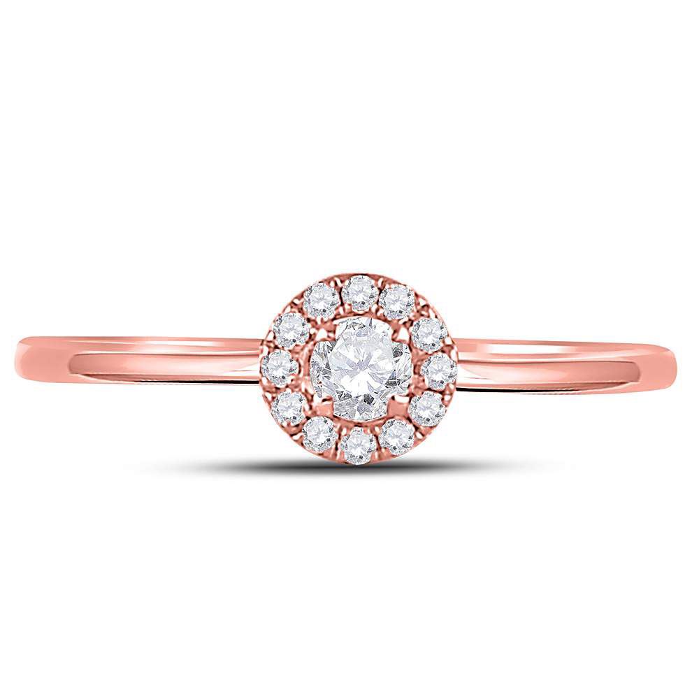 10kt Rose Gold Womens Round Diamond Halo Solitaire Promise Bridal Ring 1/5 Cttw