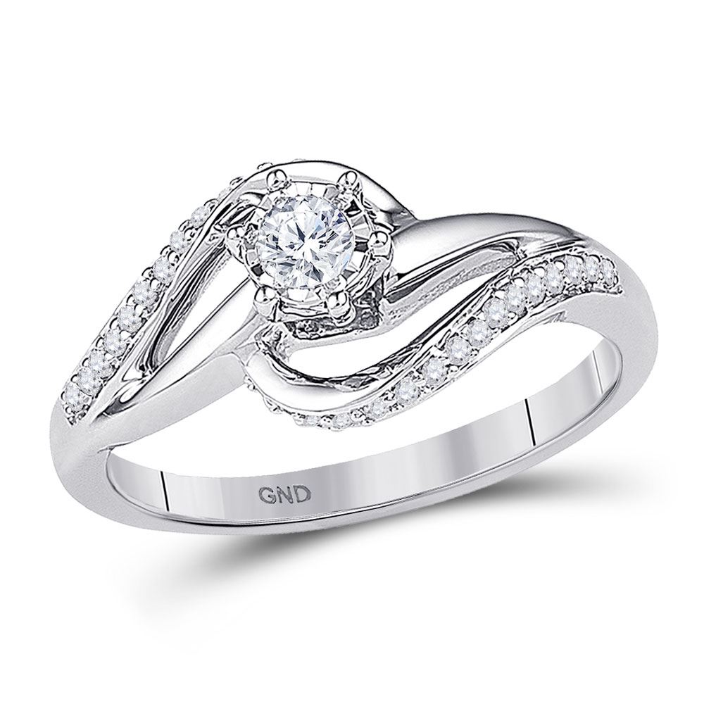 10kt White Gold Womens Round Diamond Solitaire Swirl Bridal Wedding Engagement Ring 1/5 Cttw