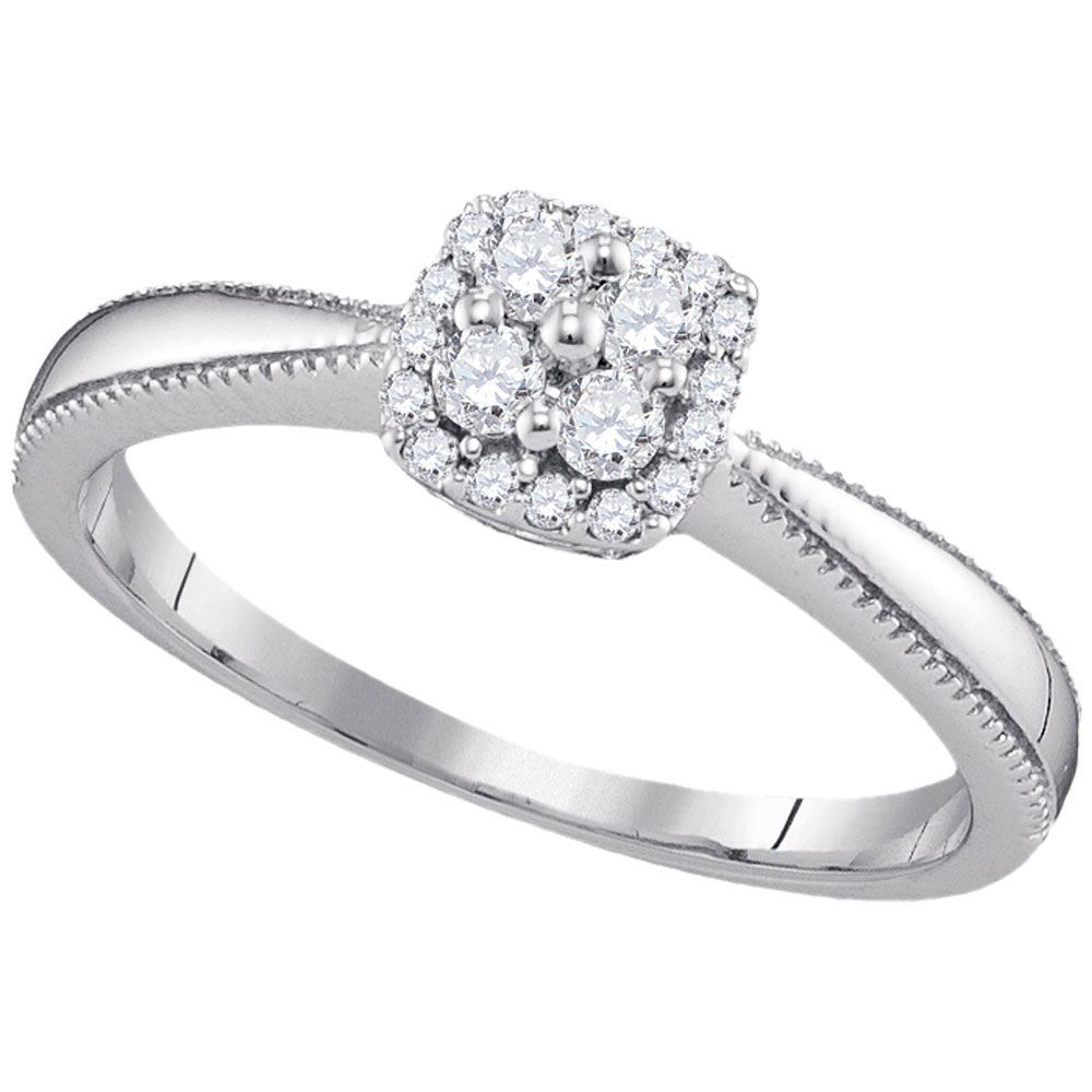 10kt White Gold Womens Round Diamond Square Halo Cluster Ring 1/5 Cttw
