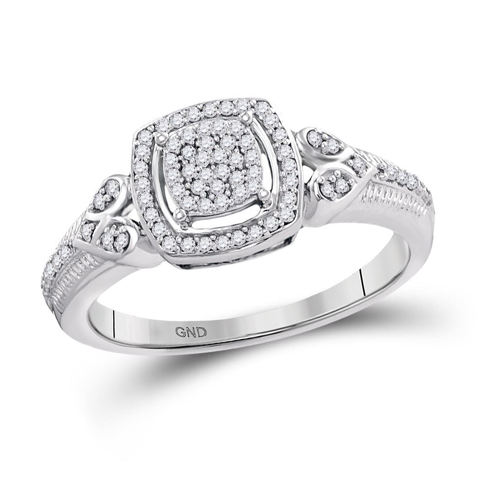 10kt White Gold Womens Round Diamond Square Halo Cluster Ring 1/5 Cttw