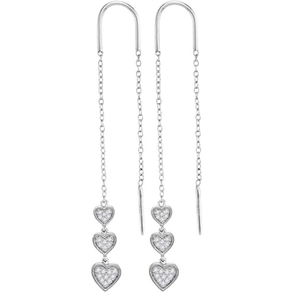 REF-21F5M ---- 1/5 CTW Round Diamond Triple Dangling Heart Threader Earrings 10kt White Gold