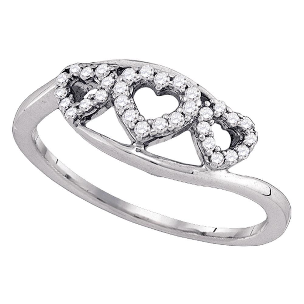 10kt White Gold Womens Round Diamond Heart Ring 1/5 Cttw