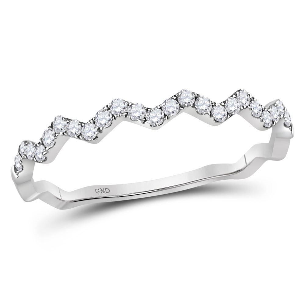 10kt White Gold Womens Round Diamond Zigzag Stackable Band Ring 1/5 Cttw