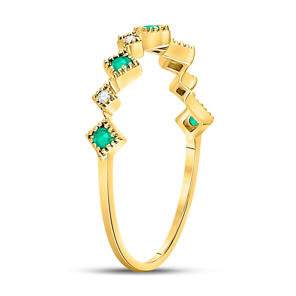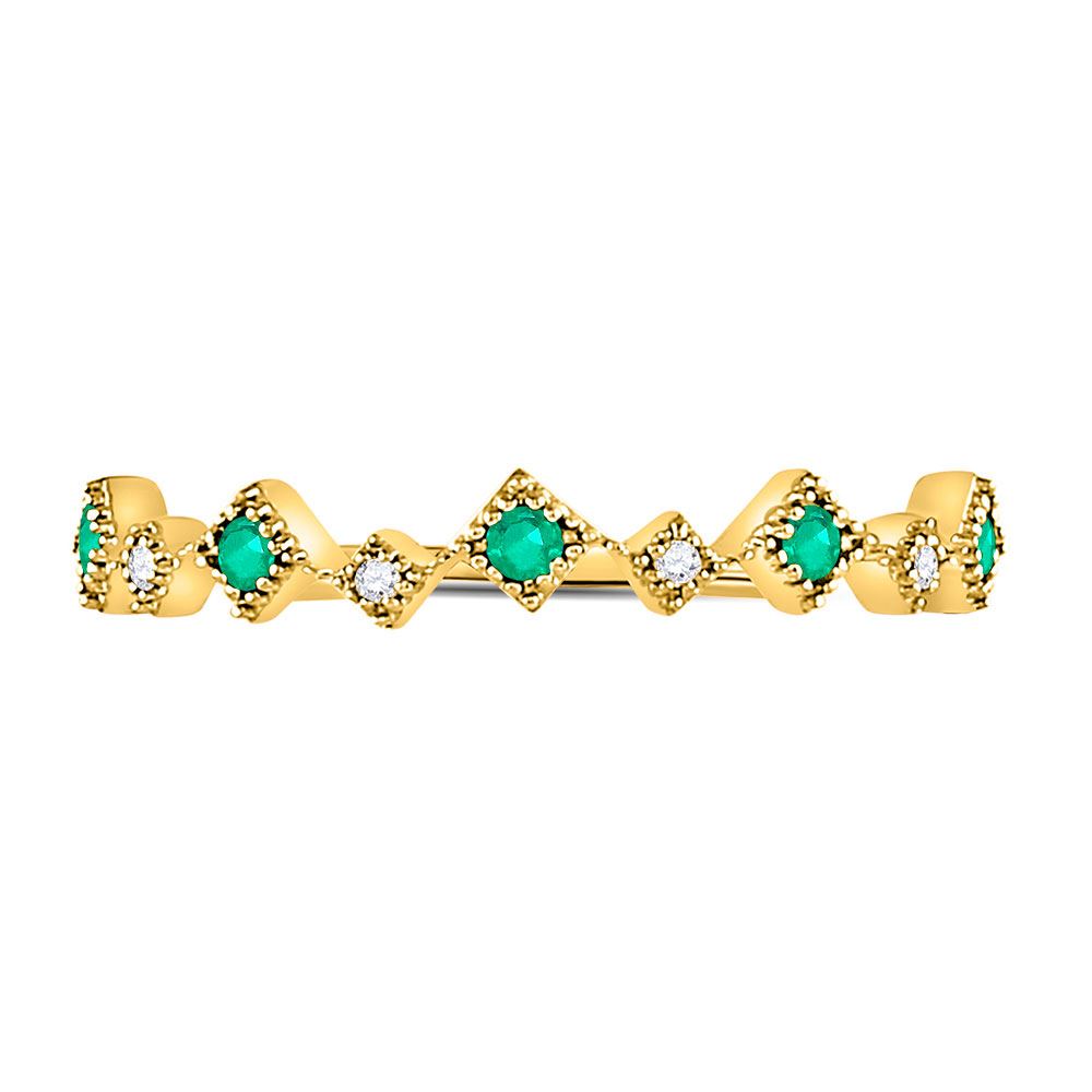 10kt Yellow Gold Womens Round Emerald Diamond Square Stackable Band Ring 1/5 Cttw