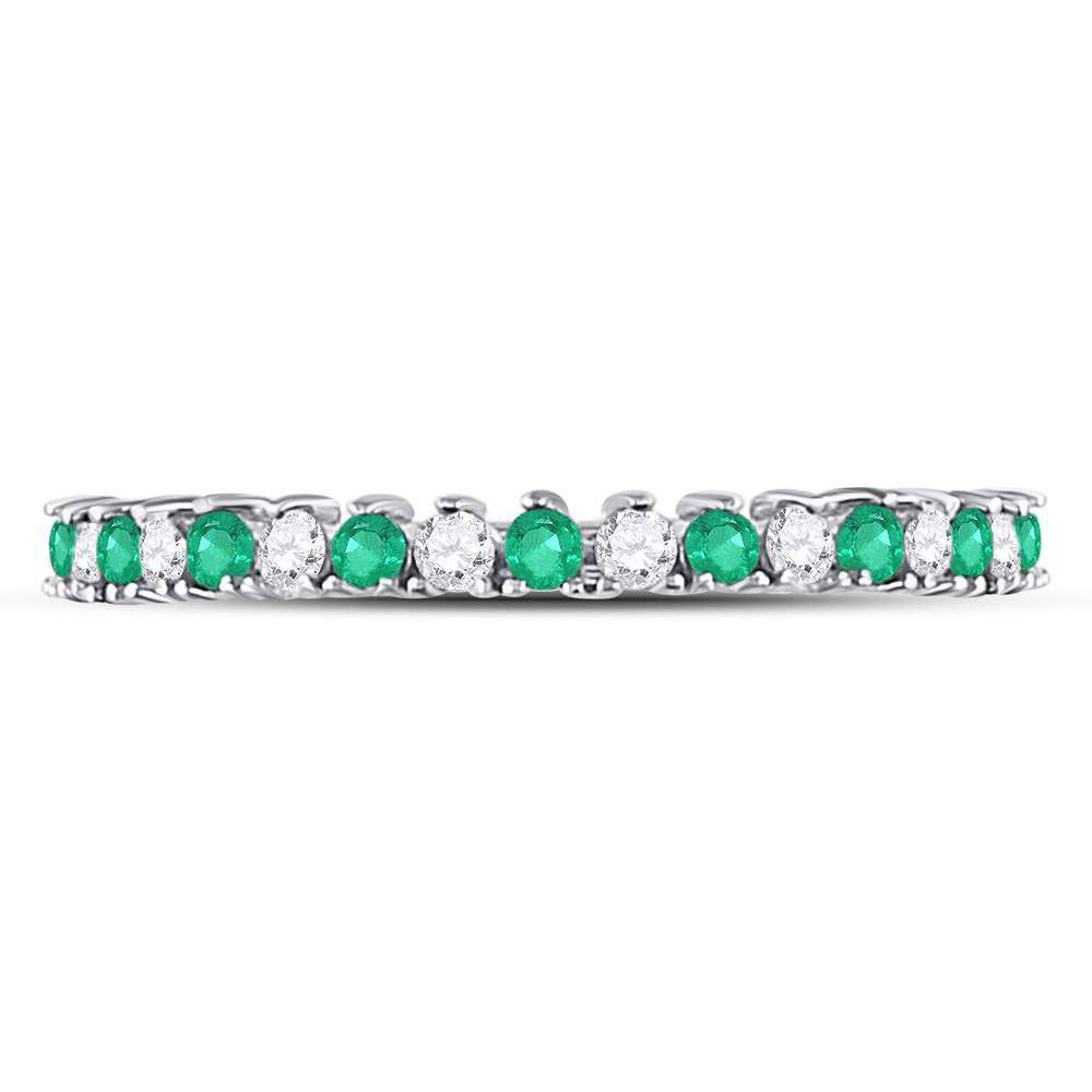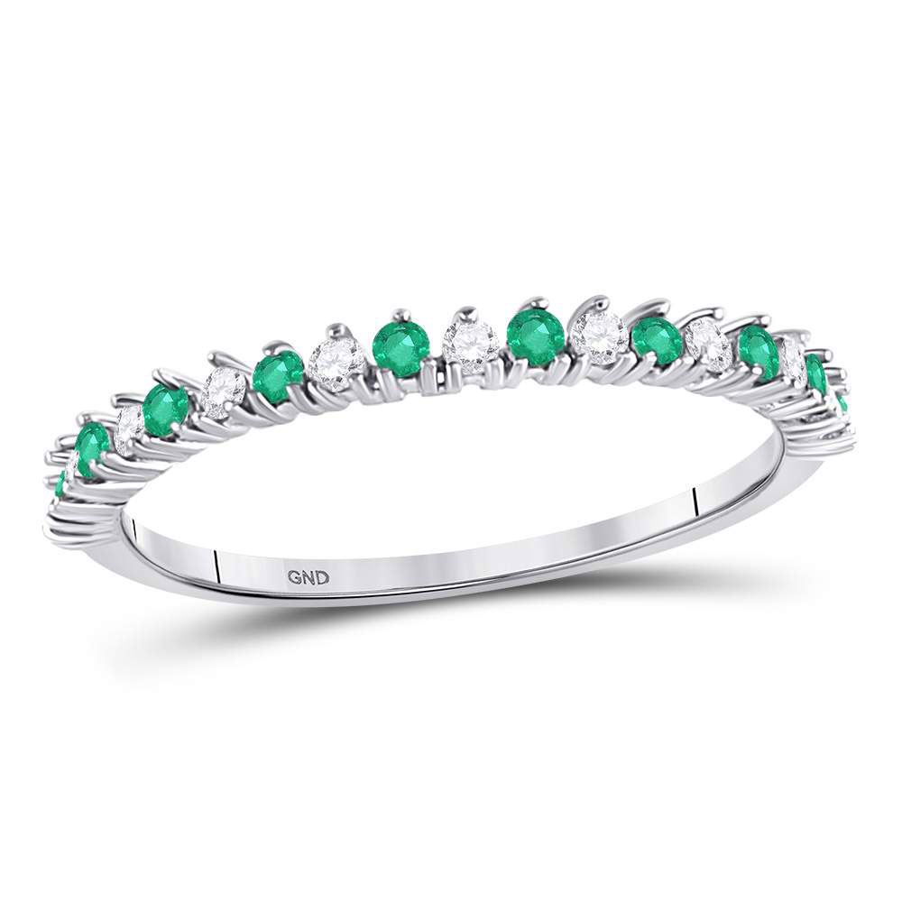 10kt White Gold Womens Round Emerald Diamond Single Row Stackable Band Ring 1/5 Cttw