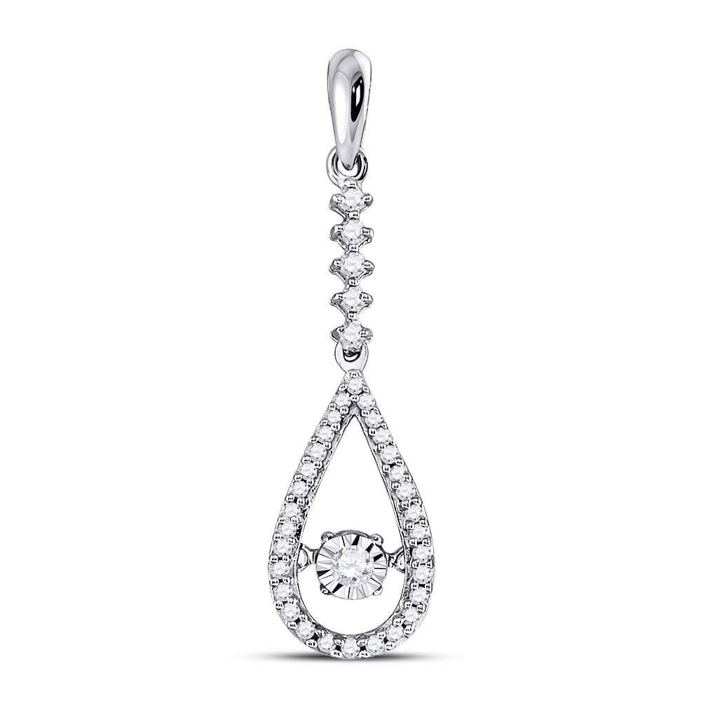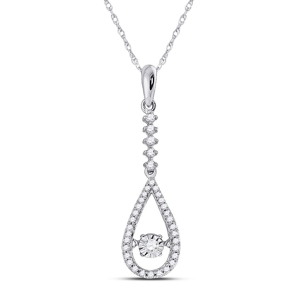 10kt White Gold Womens Round Moving Twinkle Diamond Teardrop Pendant 1/5 Cttw