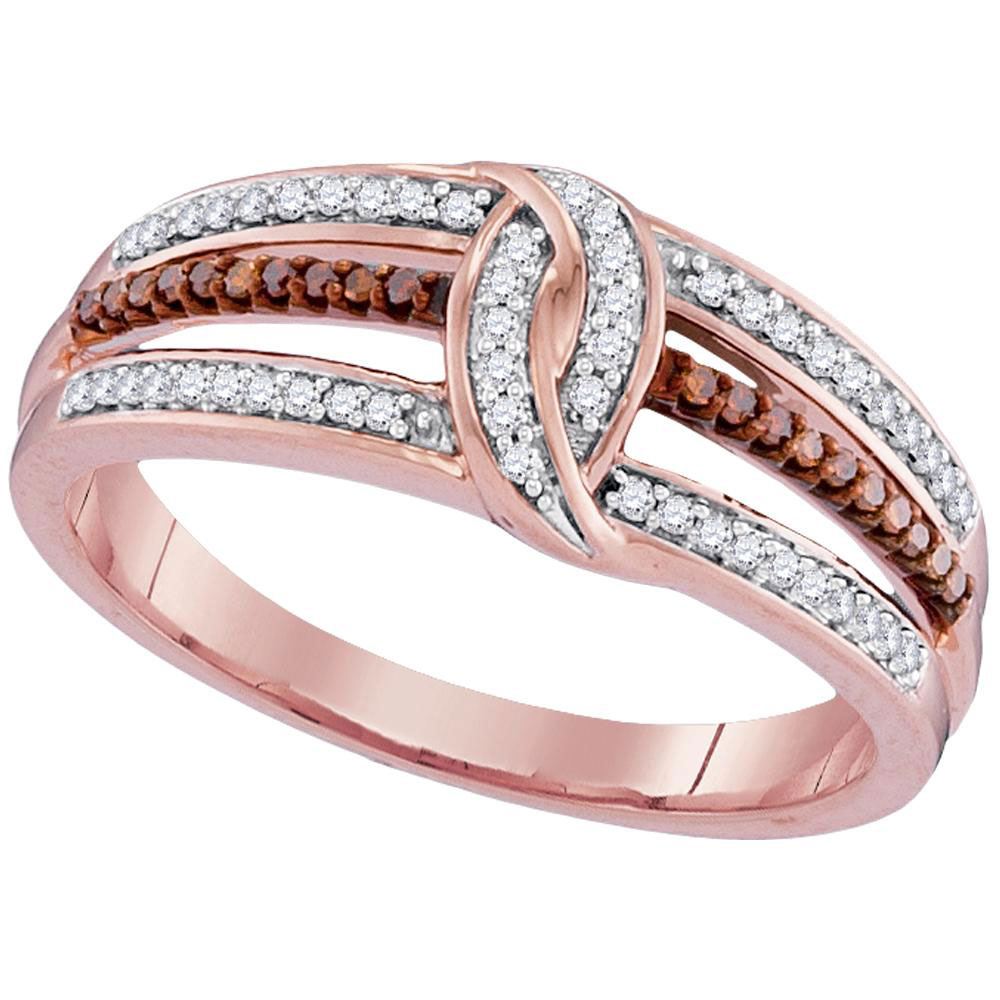 10kt Rose Gold Womens Round Red Color Enhanced Diamond Loop Band Ring 1/5 Cttw