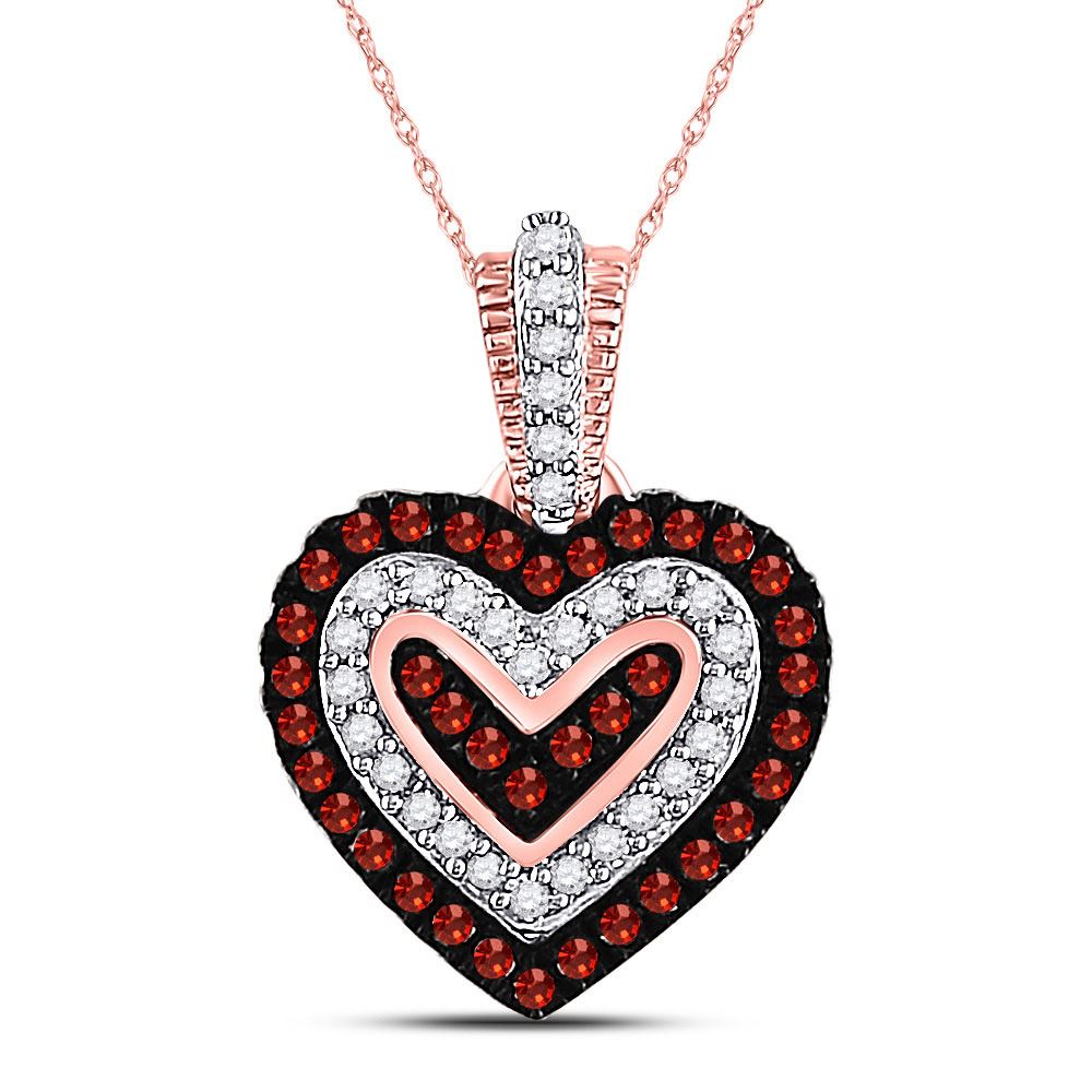 10kt Rose Gold Womens Round Red Color Enhanced Diamond Small Heart Pendant 1/5 Cttw