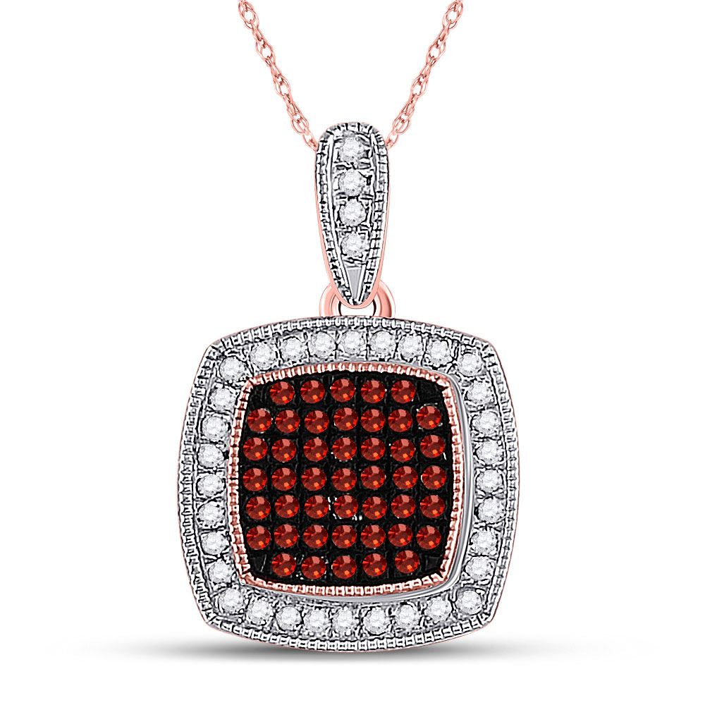 10kt Rose Gold Womens Round Red Color Enhanced Diamond Square Cluster Pendant 1/5 Cttw