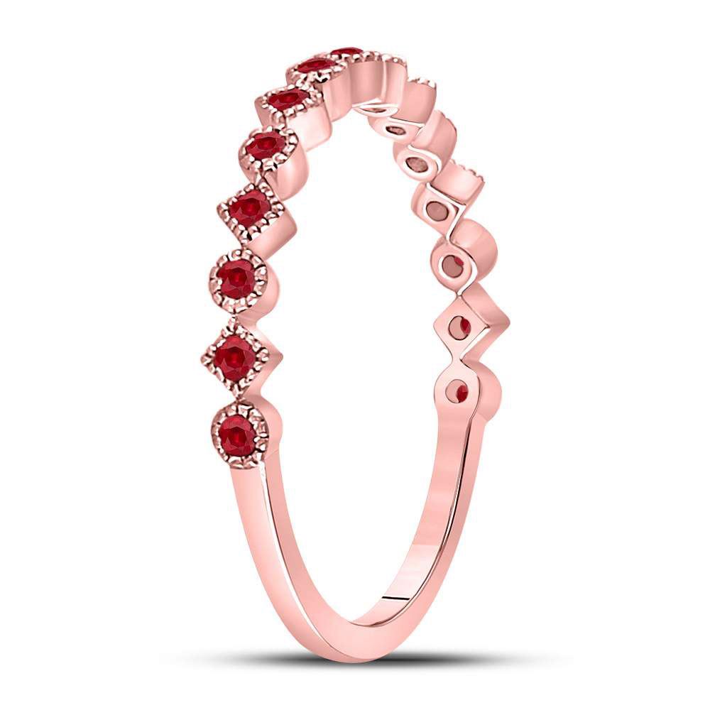 10kt Rose Gold Womens Round Ruby Square Dot Stackable Band Ring 1/5 Cttw