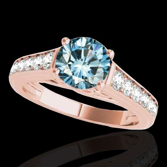 1.5 CTW SI Certified Fancy Blue Diamond Solitaire Ring 10K Rose Gold ---- Luxury Designer Brand Ring Appraised Retail Price at $10,250 ---- SKU Number US34904 10k Rose gold Ring Size is 7, Ring measuring approx. Uniform, weighing in total approx. 5 grams. Made in the USA and is stamped 10k, Main stone 1.00 carat total weight containing 1 pieces of Intense Fancy Blue color with SI quality Round shape cut Diamond , Stone #2 0.5 carat total weight containing 12 pieces of H-I color with VS/SI quality Round shape cut