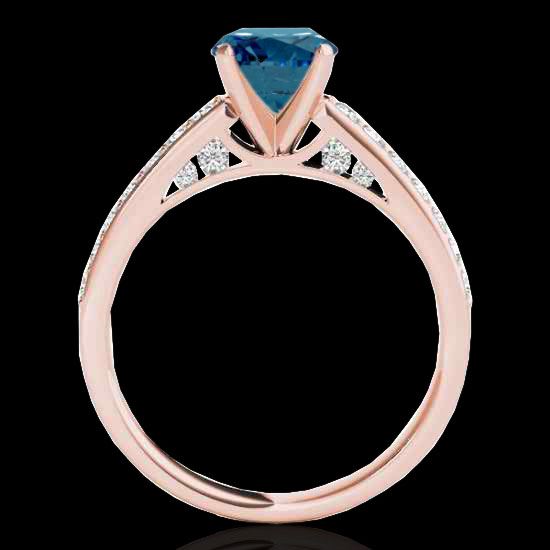 1.5 CTW SI Certified Fancy Blue Diamond Solitaire Ring 10K Rose Gold ---- Luxury Designer Brand Ring Appraised Retail Price at $10,450 ---- SKU Number US34868 10k Rose gold Ring Size is 7, Ring measuring approx. Uniform, weighing in total approx. 3.5 grams. Made in the USA and is stamped 10k, Main stone 1.00 carat total weight containing 1 pieces of Intense Fancy Blue color with SI quality Round shape cut Diamond , Stone #2 0.5 carat total weight containing 22 pieces of H-I color with VS/SI quality Round shape cut