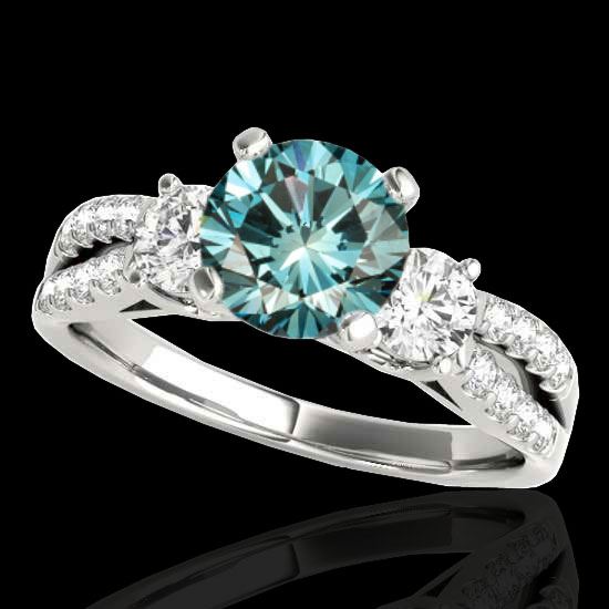 REF-172A8X -35408 ---- 1.5 CTW Si Certified Fancy Blue Diamond 3 Stone Ring 10K White Gold ---- Luxury Designer Brand Ring Appraised at $10,450 Certificate Number US35408 10k White gold, Ring Size is 7, Ring measuring approx. Uniform, weighing in total approx. 3.5 grams. Made in the USA and is stamped 10k, Main stone 1 carat total weight containing 1 pieces of Intense Fancy Blue color with SI quality Round shape cut Diamond , Stone #2 0.5 carat total weight containing 18 pieces of H-I color with VS/SI quality Round shape cut Diamond