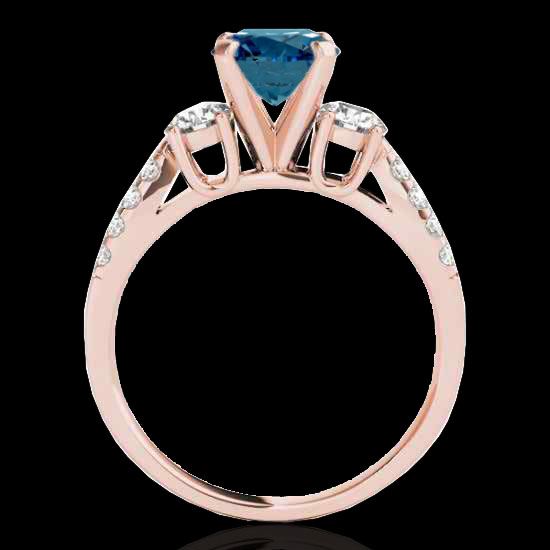 REF-172F8N -35409 ---- 1.5 CTW Si Certified Fancy Blue Diamond 3 Stone Solitaire Ring 10K Rose Gold ---- Luxury Designer Brand Ring Appraised at $10,450 Certificate Number US35409 10k Rose gold, Ring Size is 7, Ring measuring approx. Uniform, weighing in total approx. 3.5 grams. Made in the USA and is stamped 10k, Main stone 1 carat total weight containing 1 pieces of Intense Fancy Blue color with SI quality Round shape cut Diamond , Stone #2 0.5 carat total weight containing 18 pieces of H-I color with VS/SI quality Round shape cut Diamond