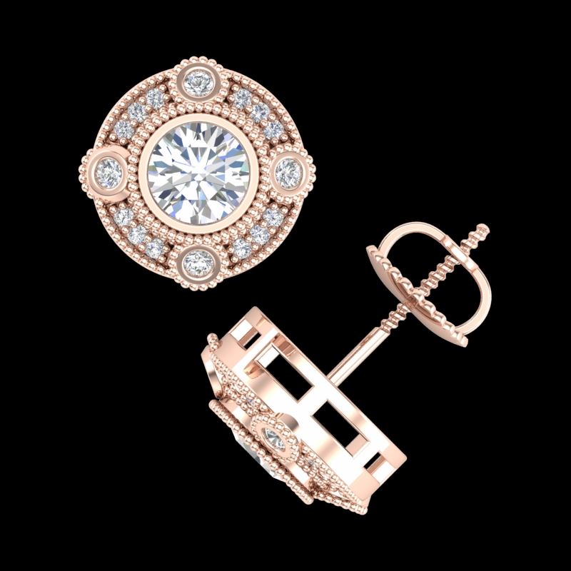 REF-263M6H -36981 ---- 1.5 CTW VS/SI Diamond Solitaire Art Deco Stud Earrings 18K Rose Gold ---- Luxury Designer Brand Earring Appraised at $14,500 Certificate Number US36981 18k Rose gold, Earring Size is Larger, Earring measuring approx. Uniform, weighing in total approx. 8.5 grams. Made in the USA and is stamped 18k, Main stone 1.15 carat total weight containing 2 pieces of H-J color with VS/SI quality Round shape cut Diamond , Stone #2 0.35 carat total weight containing 32 pieces of H-I color with VS/SI quality Round shape cut Diamond