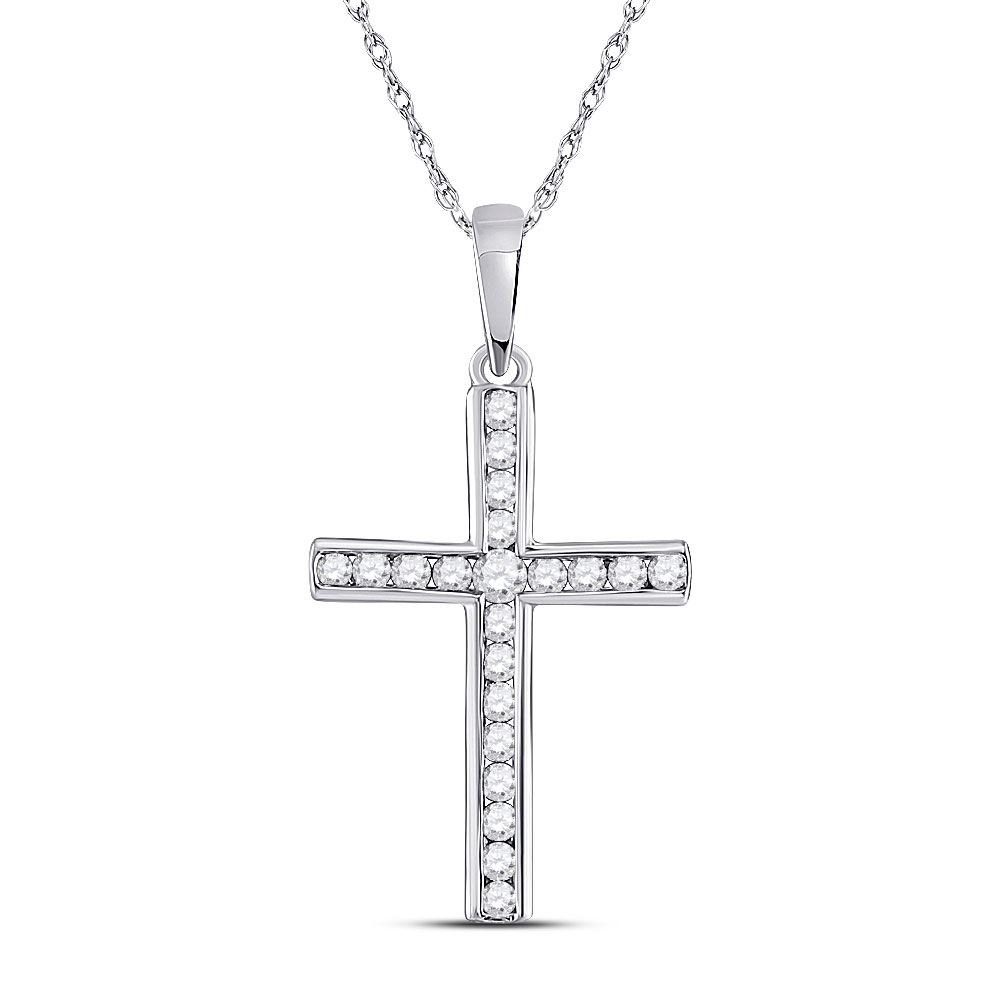 REF-16N4A - 1/5 CTW Womens Round Diamond Cross Pendant 10kt White Gold - REF-16N4A