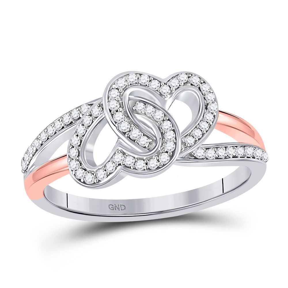 REF-23H3R - 1/5 CTW Womens Round Diamond Double Heart Ring 10kt Two-tone Gold - REF-23H3R