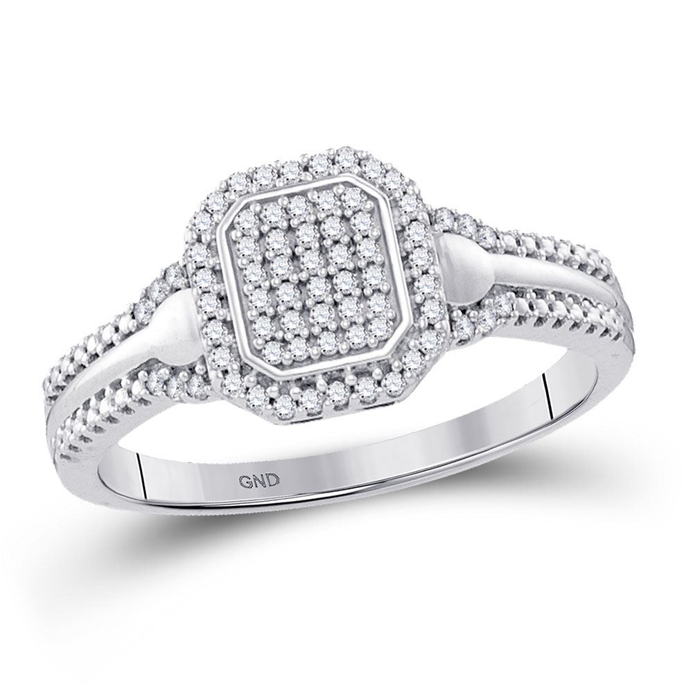 REF-20R5X - 1/5 CTW Womens Round Diamond Square Cluster Ring 10kt White Gold - REF-20R5X