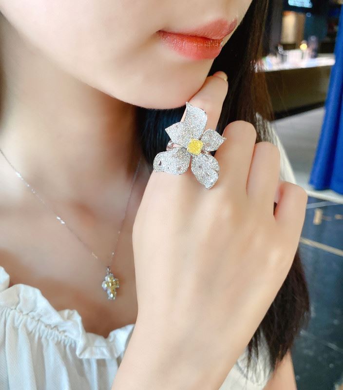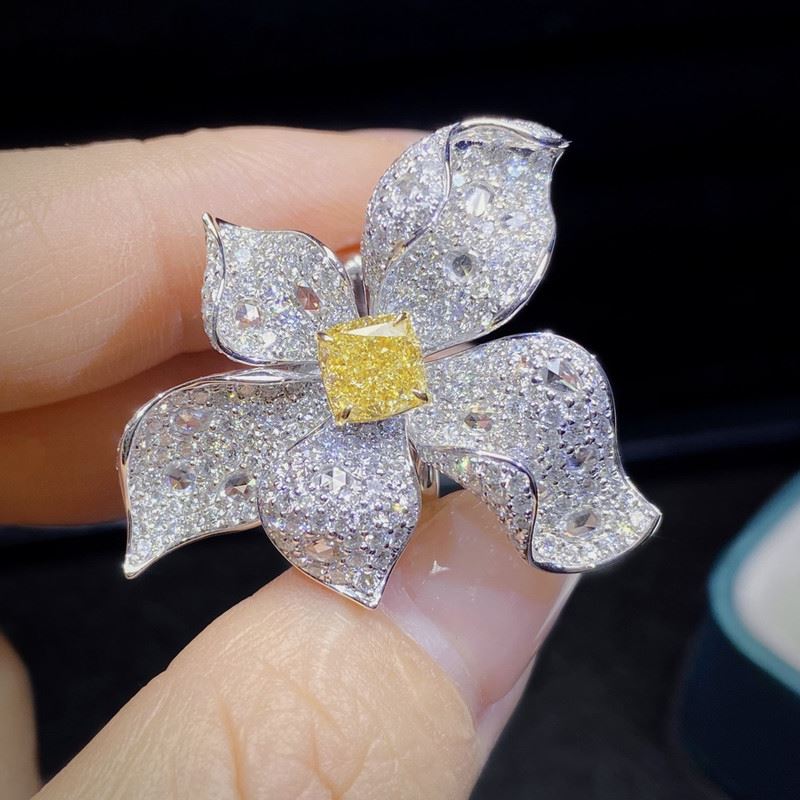 This 1.5-carat floral diamond ring features a bright yellow diamond at the center, surrounded by sparkling white diamonds arranged in a beautiful flower design. The warm hue of the yellow diamond complements the radiant brilliance of the white diamonds, creating a luxurious yet elegant piece. Ideal for various occasions, this ring exudes sophistication and a timeless sense of beauty.Ring size: 6, circumference: 52 mm, diameter: 16.6 mm, main diamond: 1.5 ct, side diamonds: 3.418 ct.Note: Comes with a GIA Natural Diamond Report.