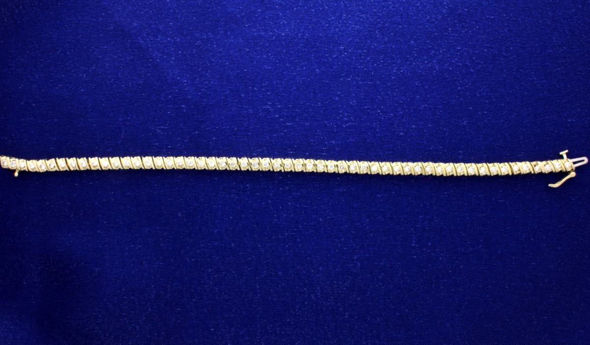 7.5" long. The diamond clarity is SI and color H-I-J. 16.9g