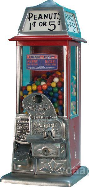1 & 5 Cent Countertop Master #2 Gooseneck Hot Nut Vending Machine w/ rare top sign, in good condition w/ keys c.1925