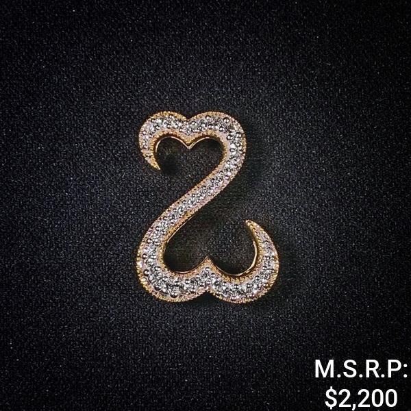1.5 DWT 14 KT Gold Dbl Hrt Pendant w/ Dimd Lining