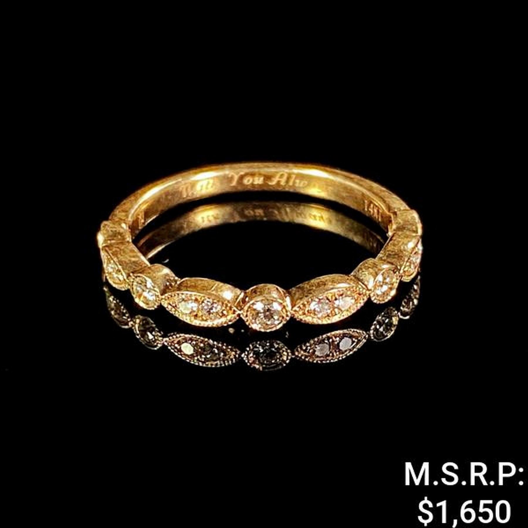 1.5 DWT 14 KT Gold w/ Dmnd Lining Ring Sz 6.5