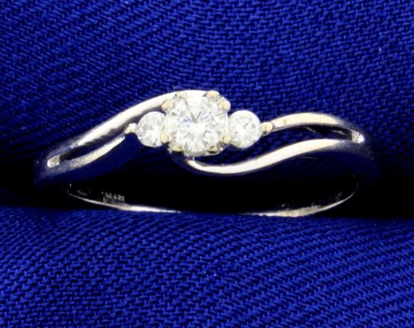 In 10k White Gold. Contains 1/5 Carat Total Weight of 3 brilliant cut high quality diamonds SI clarity and G color. Size 7. 2.1g