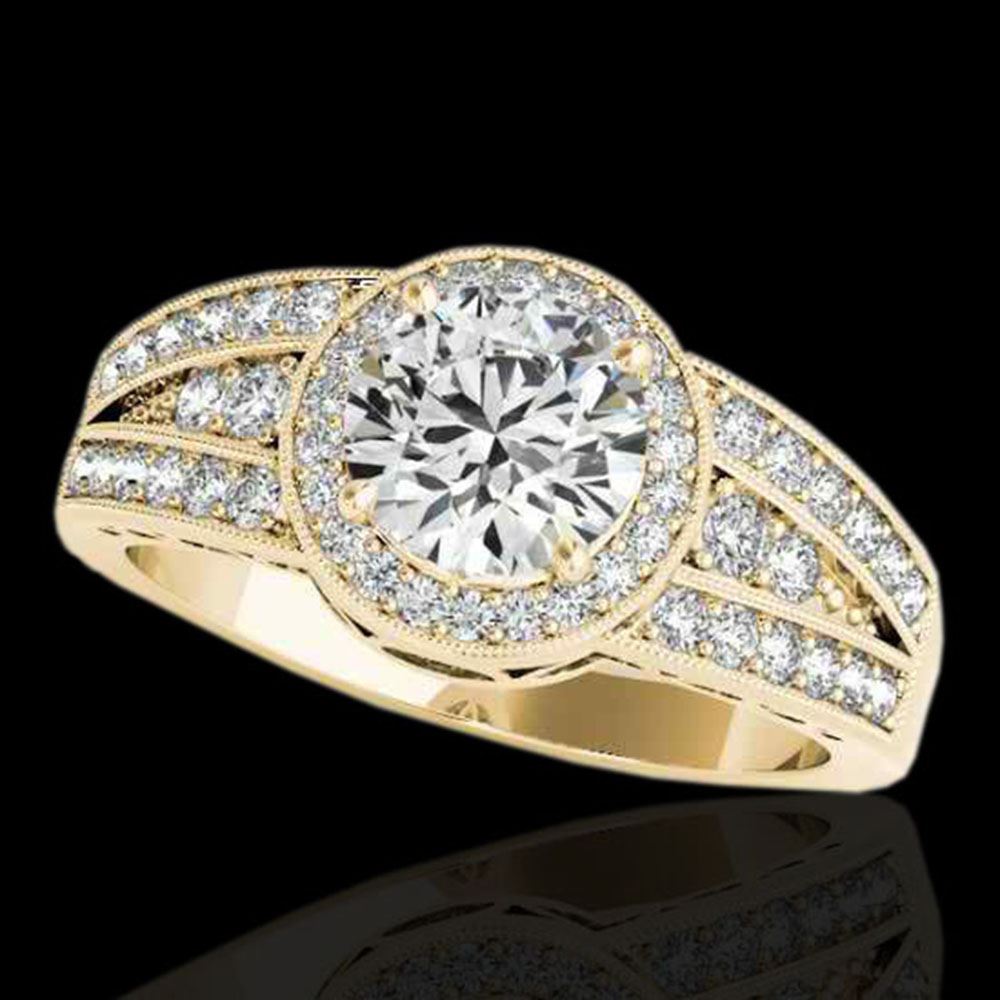 REF-211H4R - SKU: 34071 ---- 1.5 ctw Certified Diamond Solitaire Halo Ring 10k Yellow Gold