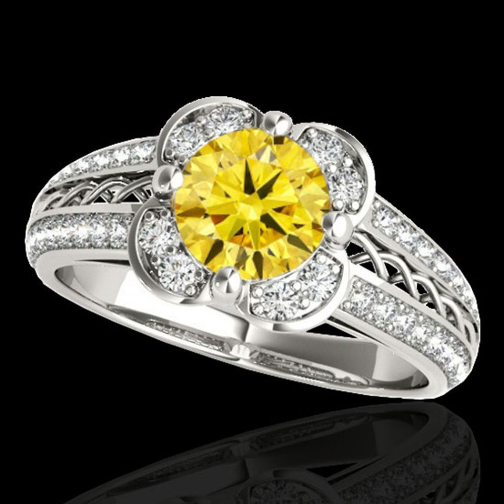 REF-190M9G - SKU: 34263 ---- 1.5 ctw Certified SI/I Fancy Intense Yellow Diamond Ring 10k White Gold