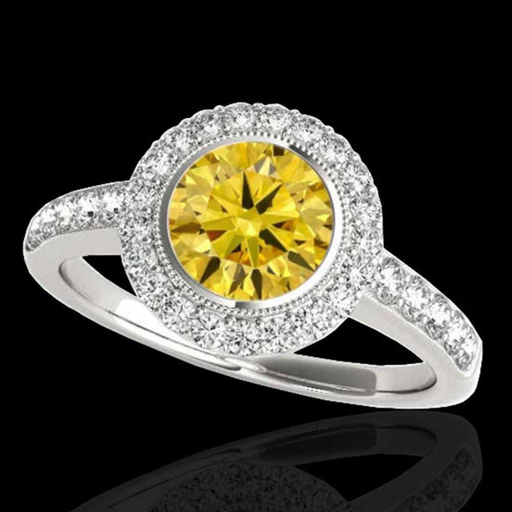 REF-204K5Y - SKU: 34448 ---- 1.5 ctw Certified SI/I Fancy Intense Yellow Diamond Ring 10k White Gold