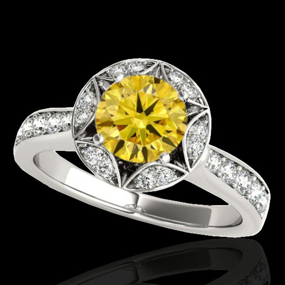 REF-211A4N - SKU: 34236 ---- 1.5 ctw Certified SI/I Fancy Intense Yellow Diamond Ring 10k White Gold