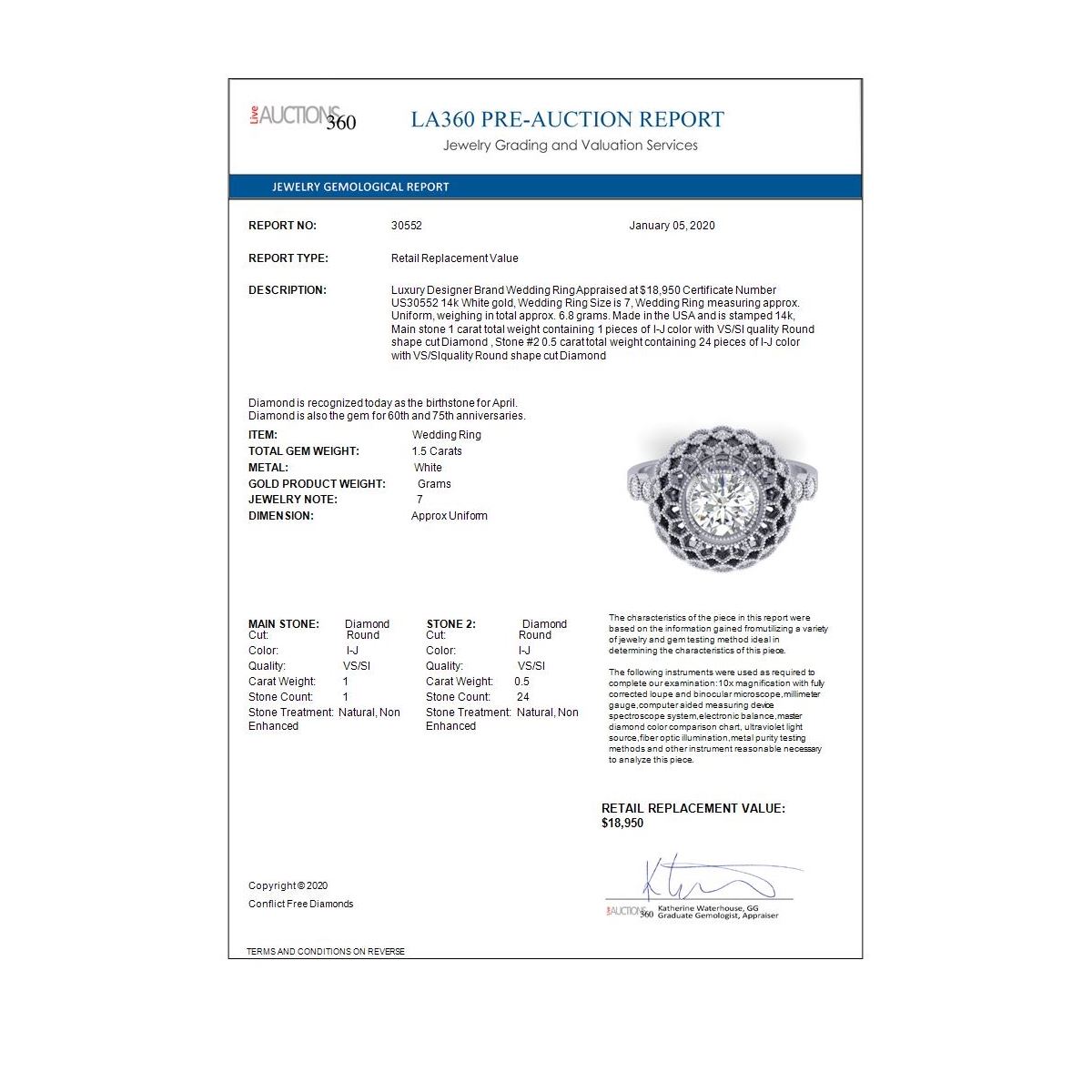 All sales are final, placing a bid is a legally binding obligation. All lots are sold as is, where is, with all the faults, imperfections, omissions and errors in the written description, estimates, appraisals, graphics and photography. USJL is not responsible for any errors or omissions in the description, graphics or photography provided or in the bidding software. Due diligence to verify the condition and description of a lot is the sole responsibility of the Bidder prior to placing any bid. Returns may only be made with the advance written authorization of USJL and are in USJL's sole discretion to approve. To request a return you must provide a written request fully explaining the basis for the return no later than 4 days after your receipt of the lot. Under no circumstances will any amounts other than the winning bid amount be refunded. A restocking charge of 19% of the full invoice amount may apply in USJL 's sole discretion. Any allowed returns must be received in exactly the same condition as when originally shipped to Buyer, or they will be returned to buyer at Buyer's cost. Any unauthorized returns will be refused. DELIVERY REFUSAL OF ITEMS SHIPPED BY US JEWELRY LIQUIDATION TO THE BIDDER CONSTITUTES AN UNAUTHORIZED RETURN IN DIRECT VIOLATION OF THESE GENERAL TERMS AND CONDITIONS.