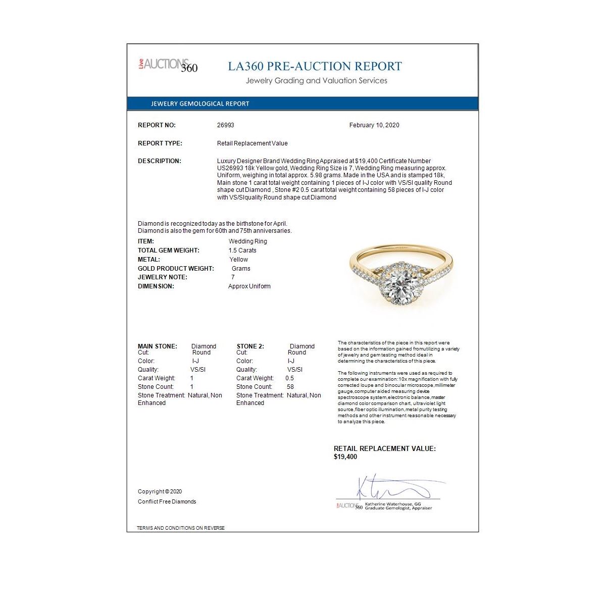 REF-294A3N - SKU: 26993 ---- 1.5 ctw Certified VS/SI Diamond Halo Ring 18k Yellow Gold