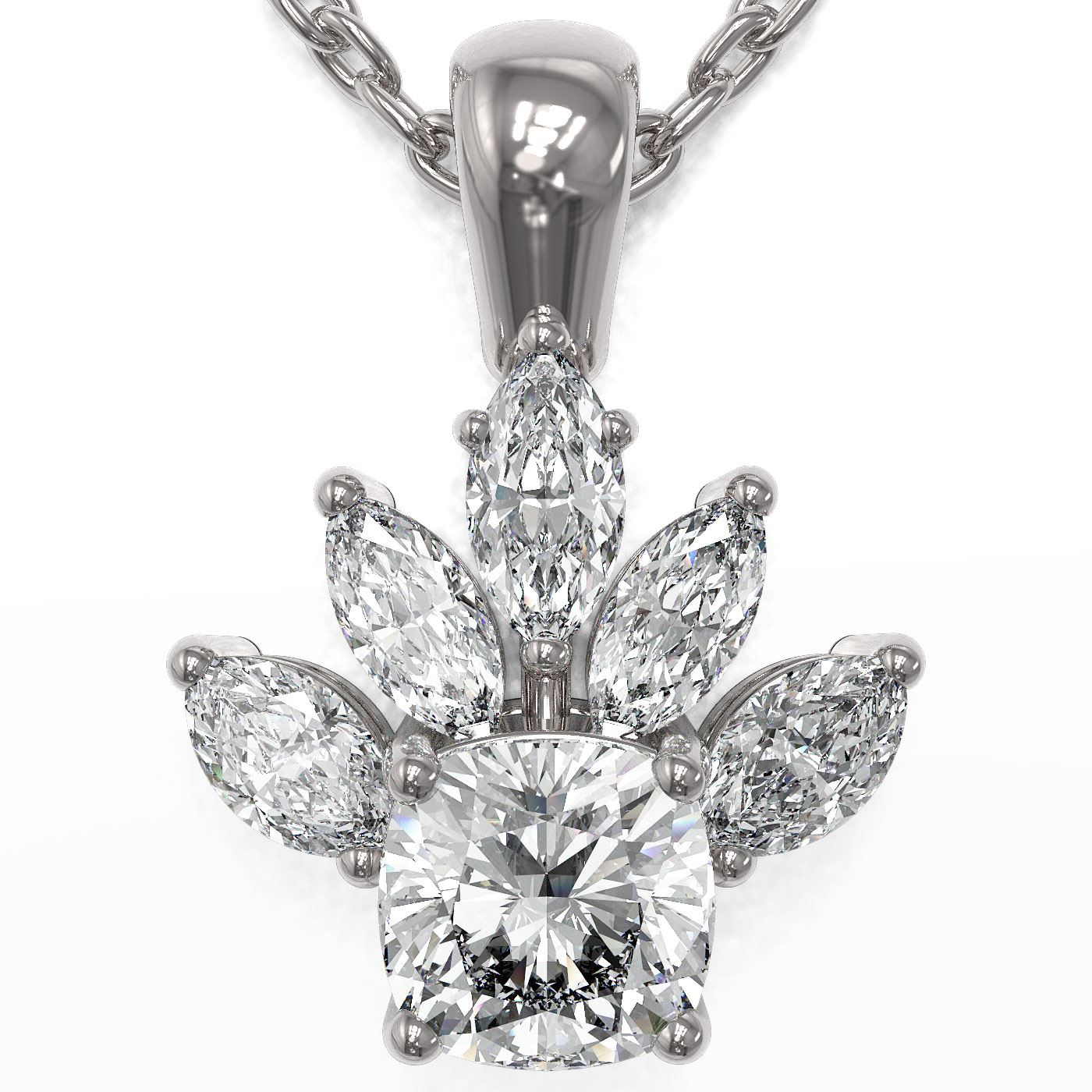 REF-320G3W - SKU: 48948 ---- 1.5 ctw Cushion Cut Diamond Designer Necklace 18K White Gold