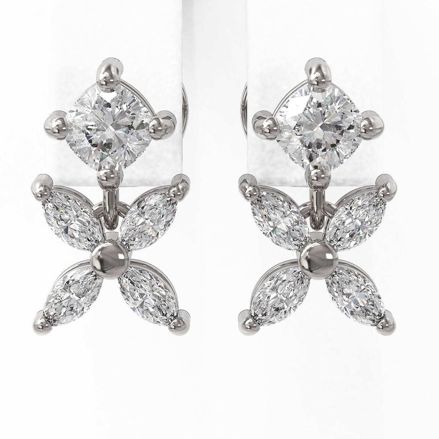 REF-194R9K - SKU: 46836 ---- 1.5 ctw Cushion & Marquise Cut Diamond Earrings 18K White Gold