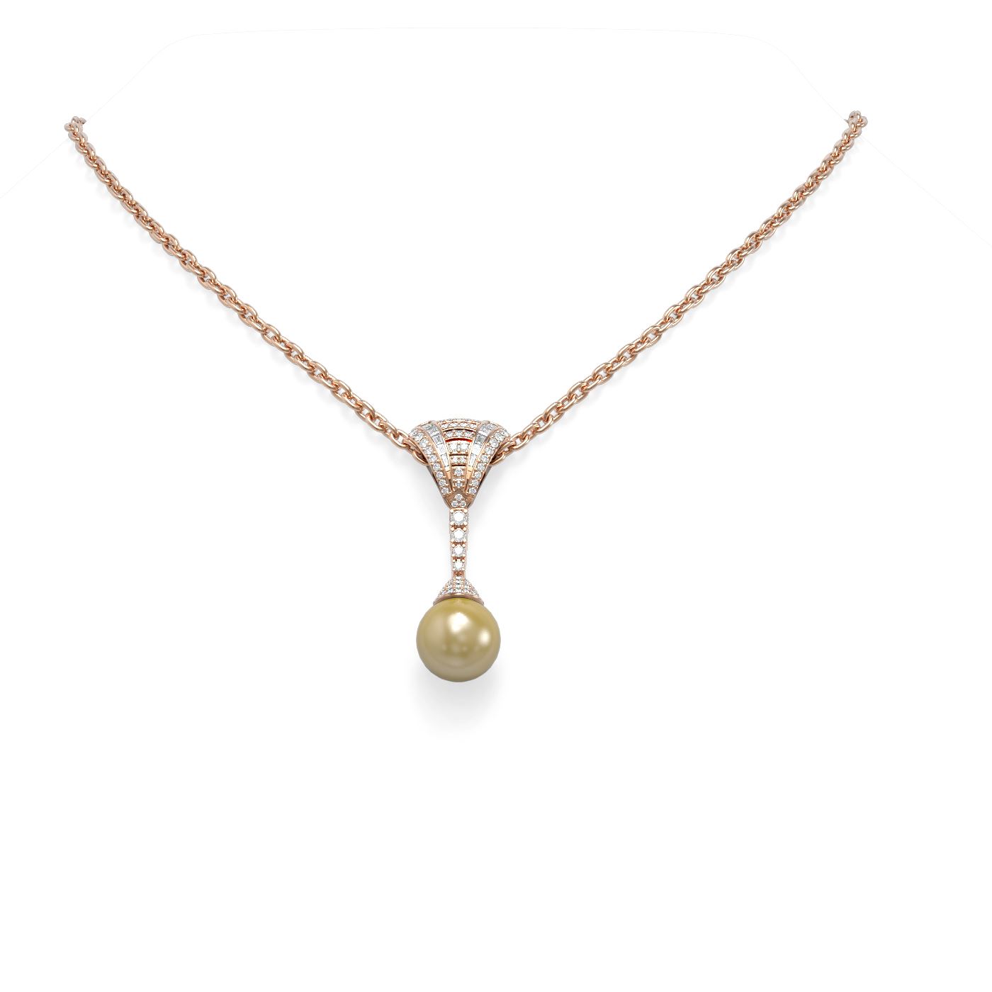 REF-160F9M - SKU: 55578 ---- 1.5 ctw Diamond & Pearl Necklace 18K Rose Gold