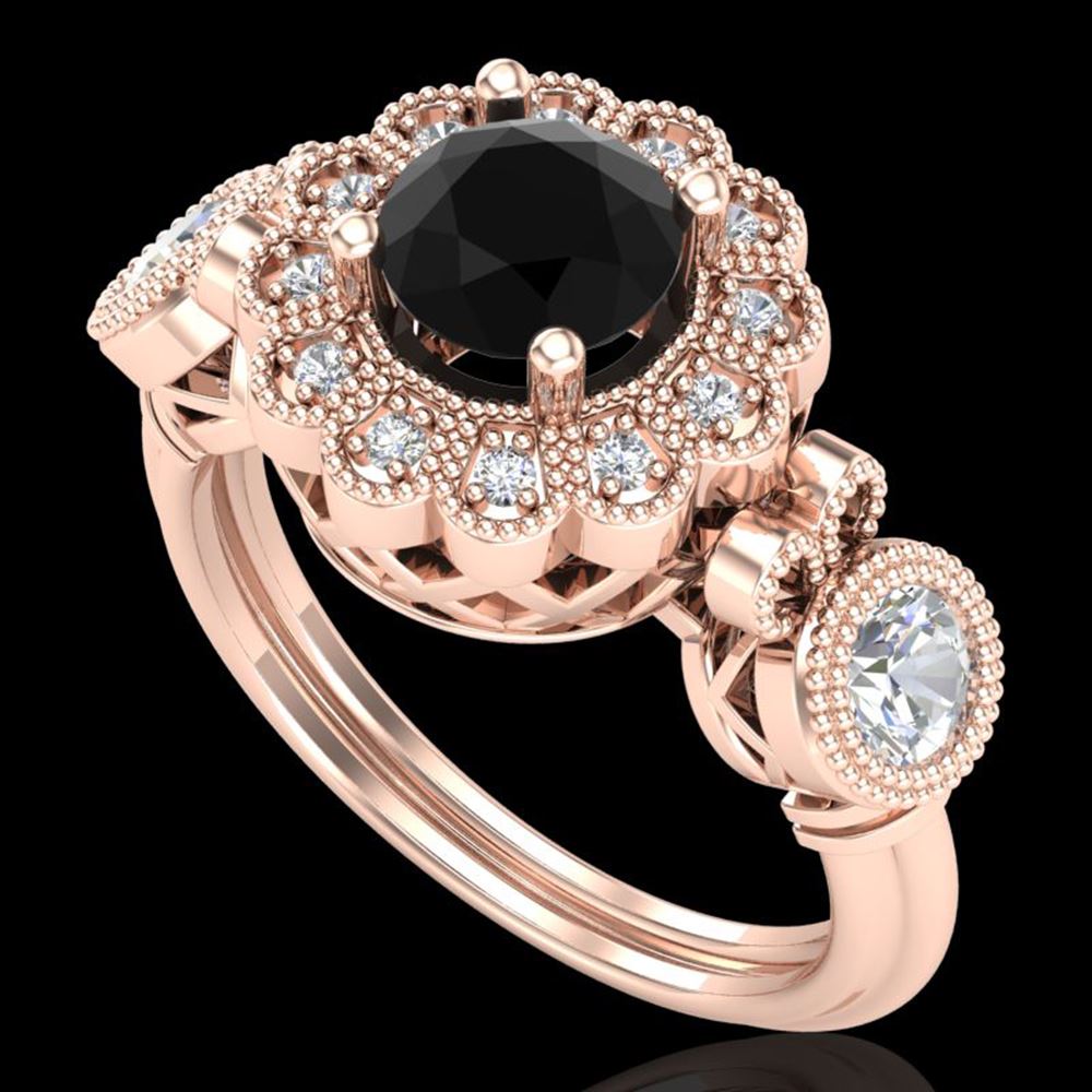 REF-170A2N - SKU: 37850 ---- 1.5 ctw Fancy Black Diamond Art Deco 3 Stone Ring 18k Rose Gold