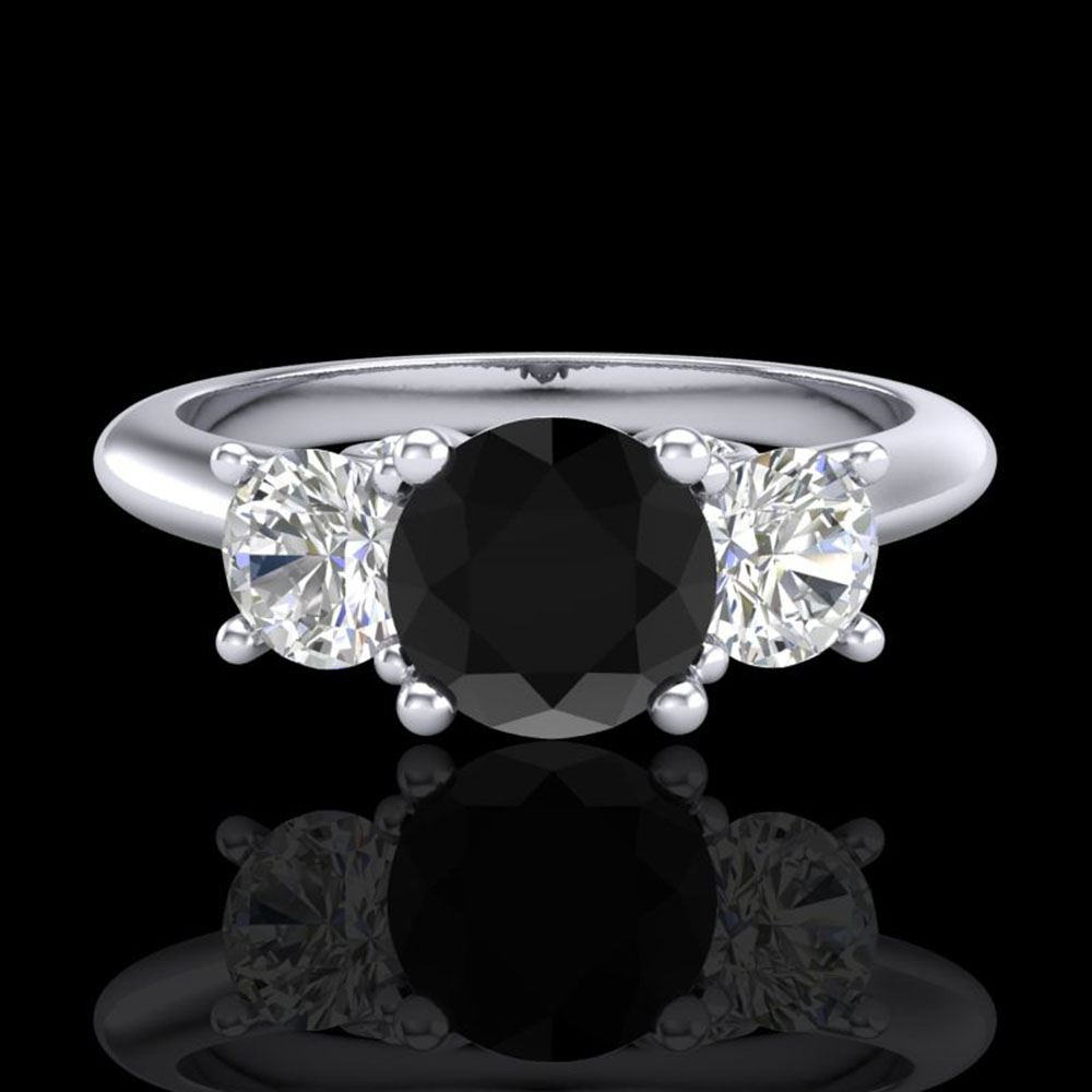 REF-136W4H - SKU: 38262 ---- 1.5 ctw Fancy Black Diamond Art Deco 3 Stone Ring 18k White Gold