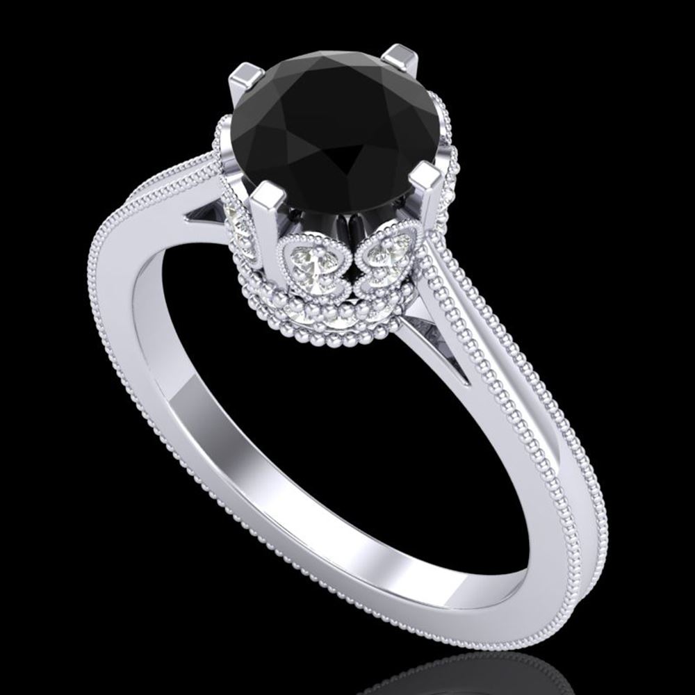 REF-109X3A - SKU: 37345 ---- 1.5 ctw Fancy Black Diamond Engagment Art Deco Ring 18k White Gold
