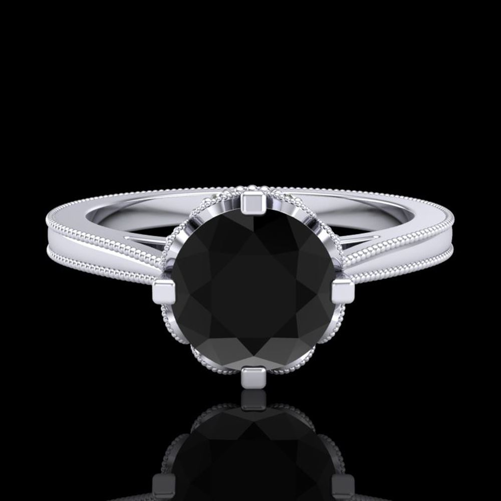 REF-109X3A - SKU: 37345 ---- 1.5 ctw Fancy Black Diamond Engagment Art Deco Ring 18k White Gold