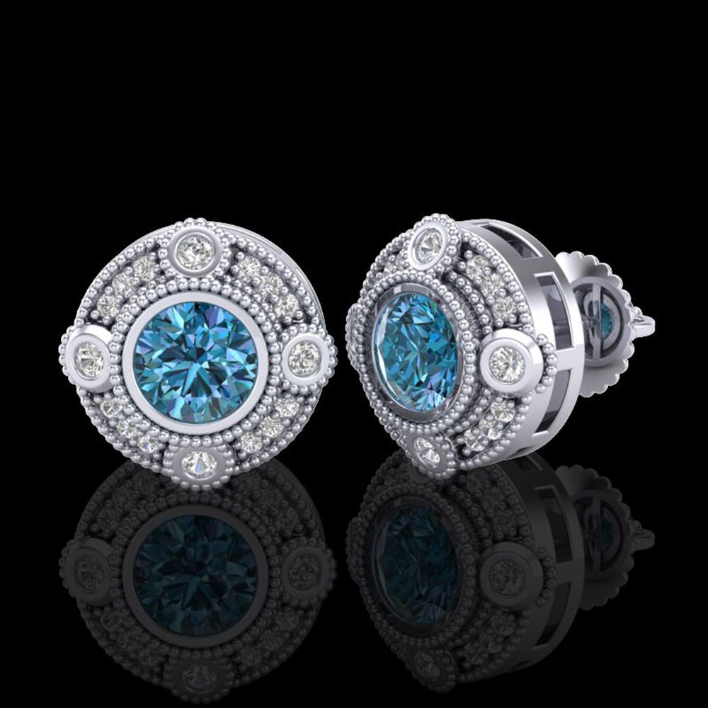 REF-178W2H - SKU: 37698 ---- 1.5 ctw Fancy Intense Blue Diamond Art Deco Earrings 18k White Gold