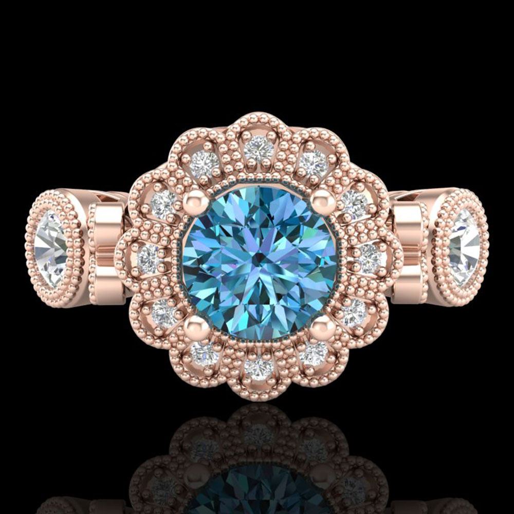 REF-218R2K - SKU: 37853 ---- 1.5 ctw Intense Blue Diamond Art Deco 3 Stone Ring 18k Rose Gold