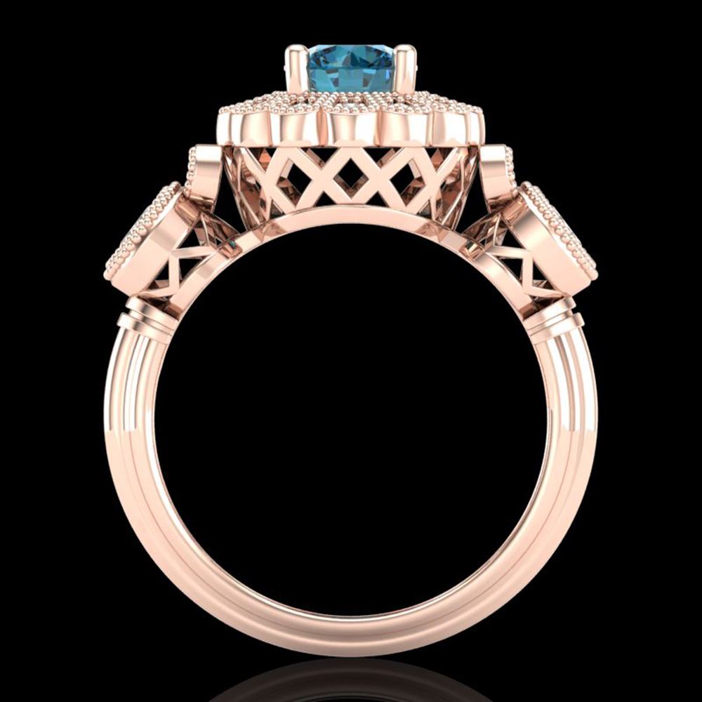 REF-218R2K - SKU: 37853 ---- 1.5 ctw Intense Blue Diamond Art Deco 3 Stone Ring 18k Rose Gold